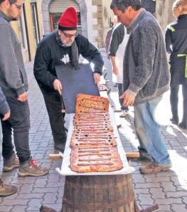 Des de llavors, cada 3 de febrer Falset celebra La Festa de Sant Blai. El protagonista indiscutible és el Coc, una coca amb recapte de grans dimensions elaborada amb ceba, pebrot, llangonissa i olives. Aquest coc es prepara amb peces d’uns seixanta centímetres que es col·loquen un darrere l’altre fins a tenir la llargada desitjada. «Avui dia el coc fa uns dotze o tretze metres de llargada, però n’havia arribat a tenir fins a vint-i-cinc. Ara no el fem tan llarg perquè ens dificultava molt el transport pel carrer», explica l’Anton. La menja és transportada sobre uns suports que traginen els nens i nenes de sisè curs de l’escola de Falset. «Ara ja tenim unes estructures de fusta, però al començament de tot de recuperar la festa el posàvem al damunt d’una escala en horitzontal, amb sacs entremig dels escalons». Tant han perfeccionat el suport del Coc que fins i tot els permet maniobrar si han de girar pels carrers i les cantonades.