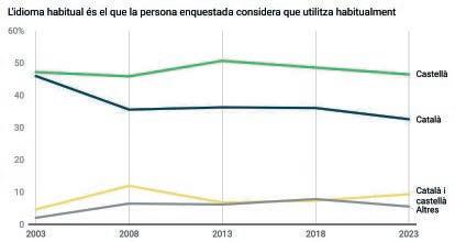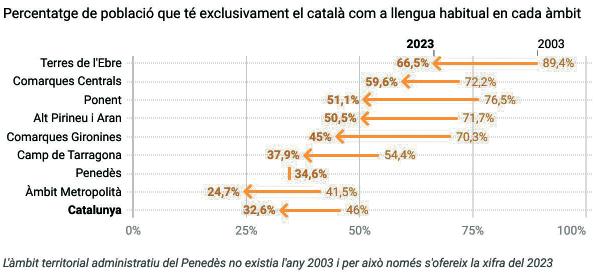 La població tarragonina que té el català com a llengua habitual ha caigut del 54,4% al 37,9% en vint anys. Al Penedès, el percentatge encara és més baix (34,6%) i a les Terres de l’Ebre és on es manté el nivell d’ús més alt, amb un 66,5%