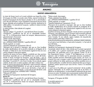 compra del bloc número 19 del carrer López Peláez, que compta amb tres pisos. El preu de transmissió serà de 323.242,23 euros, al qual se li sumarà el cost de rehabilitació de 134.830 euros. Aquests diners, així com els que es destinaran per a l’edifici de la Part Alta, sortiran de la partida d’1,5 milions que s’ha reservat en els pressupostos municipals del 2026 per a l’adquisició d’habitatges per tanteig i retracte, i les obres de reforma.