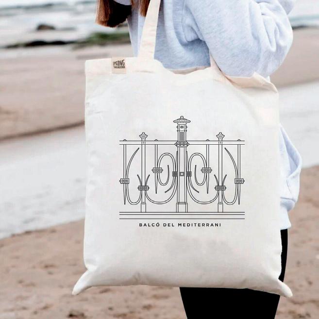 Bossa de roba amb una elegant il·lustració a línia del Balcó del Mediterrani, un dels espais més emblemàtics de Tarragona. Un record quotidià de passejades per la Rambla i del gest de «tocar ferro», símbol de bona sort. Disponible a amazingtarragona.com. Preu: 12,50 euros.
