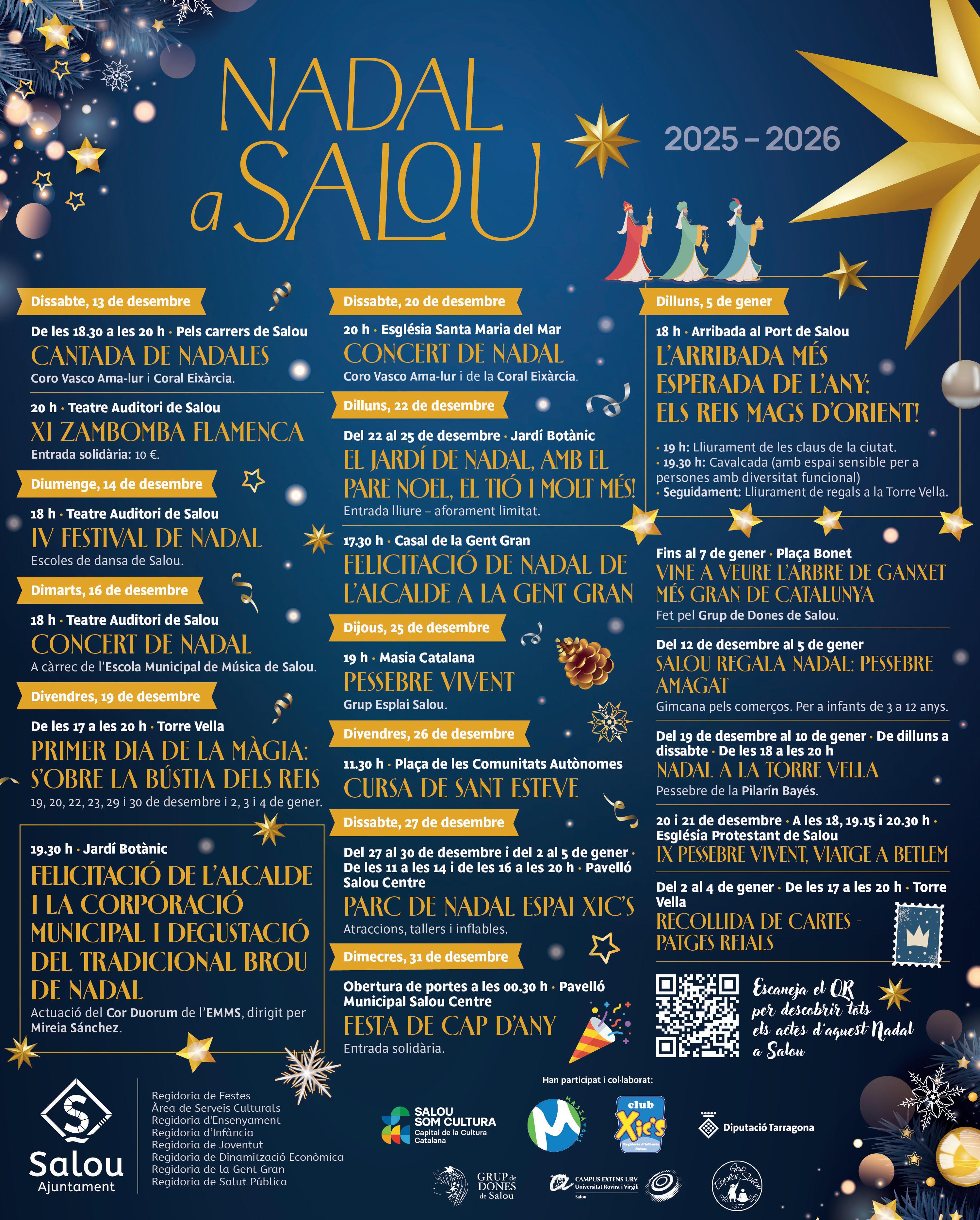 La música i la tradició s’agafen de la mà aquests darrers dies de l’any, a través de molts concerts de música clàssica, de cantada de nadales o a través d’obres de teatre de temàtica nadalenca com són Els Pastorets. N’hi ha per a tots els gustos. I no s’ha d’oblidar els actes que any rere any no falten en aquest calendari de Nadal, com són el Tió, l’Arribada de l’Home dels Nassos, el primer bany o els Reis Mags. Aquestes pàgines especials que tenen entre les seves mans recullen les programacions d’actes dels principals municipis del Camp de Tarragona, a més d’una petita guia d’idees per tal de trobar aquell obsequi que sempre se’ns resisteix una mica més del compte. Per cert, en nom de ‘Diari Més’, molt bones festes!