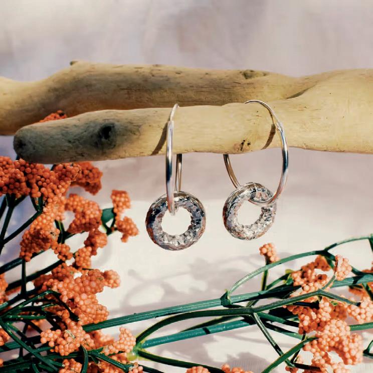 Arracades d’aro amb un disseny elegant i versàtil, ideals tant per al dia a dia com per a ocasions especials. L’aro té un diàmetre de 3,1 cm i incorpora un cercle penjant de 1,5 cm, que aporta moviment i lleugeresa a la peça. Un complement delicat, d’estètica atemporal i acabat amb cura artesanal. Dissenyades i elaborades a Mont-roig del Camp per Clive Joies. Preu total: 43 euros (IVA inclòs).