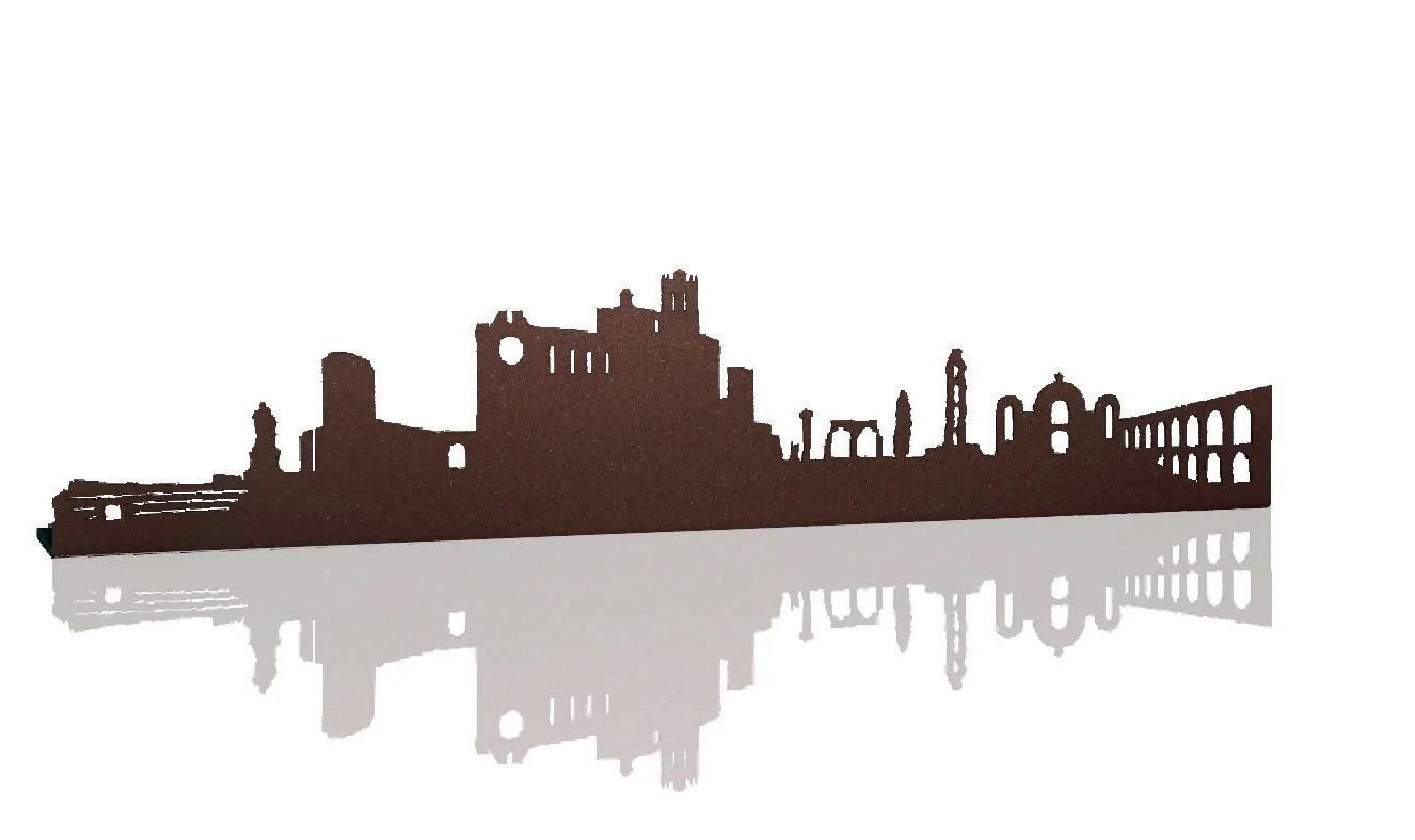 Figura decorativa metàl·lica de 50 cm amb acabat òxid que reprodueix l’skyline de Tarragona. Una peça elegant i ideal per regalar, que combina records, patrimoni i experiència de viatge. Inclou monuments com l’Amfiteatre romà, la Catedral, el Pont del Diable, el monument als Castellers, el de Roger de Llúria i el Mercat Central. Fabricada a Barcelona amb un acabat sostenible, es pot personalitzar per a empreses, fires o esdeveniments. Disponible a skylinesoftheworld.com. Preu total: 69,90 euros.
