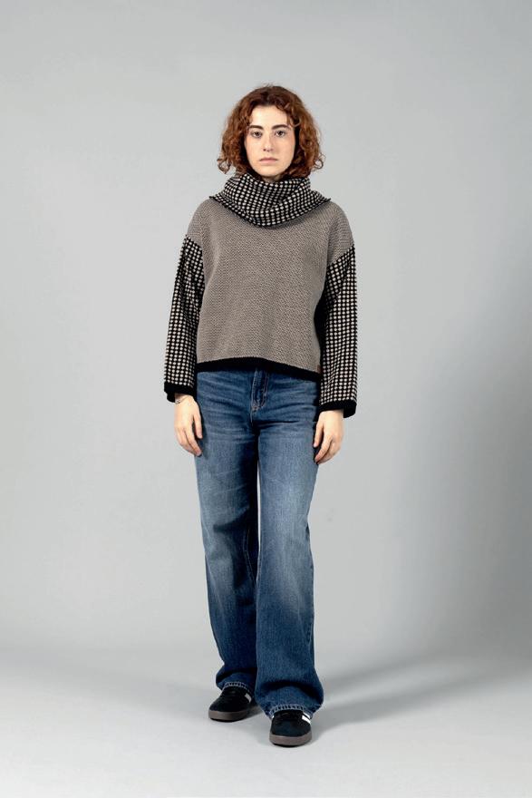 Jersei combinat amb estampat al cos i mànigues xispejades, disponible en diverses combinacions de color. Confeccionat amb 60 % cotó i 40 % PAC, està dissenyat, teixit i produït íntegrament a la Garrotxa amb fil 100% reciclat i de proveïdor local. Producció limitada, compromesa amb un model vegà i sostenible. Preu: 69,90 euros.