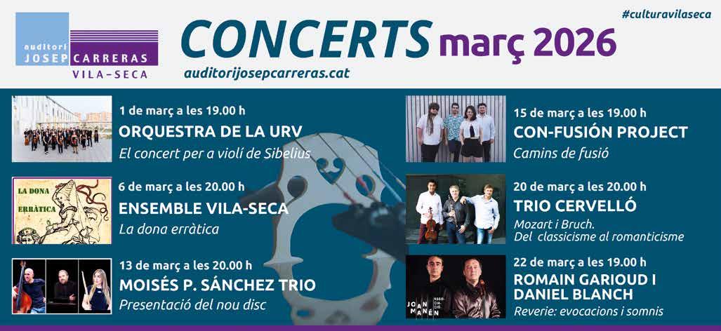 20 h. Auditori Josep Carreras Concert. La dona erràtica, amb l’Ensemble Vila-seca Entrades a entrades.vila-seca.cat