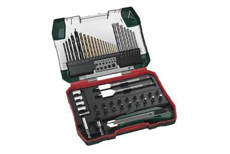 19 LT LTX LTX LTX-3 L L LT QUICK PLUS Wegwijzer voor boren en schroeven: L - LT - LTX onderverdeling Light class Nm Prestatie Compact class Supreme class Tot max. koppel 60 Nm Slangenboor boor-Ø tot 10 mm Schroeven Max. 8x120 mm zacht hout Schroeven Max. 8x300 mm laag toerental Max. 6x200 mm hoog toerental Klokzaag tot 108 mm Klokzaag tot 152 mm Schroeven Max. 15x300 mm/10x500 mm laag toerental Max. 6x300 mm hoog toerental Voor lichte toepassingen Tot max. koppel 75 Nm Slangenboor boor-Ø tot 38 mm Krachtig en veelzijdig Slangenboor boor-Ø tot 50 mm extreem krachtig en robuust Metabo Quick Snel en efficiënt werken dankzij gereedschapsloze Quick-wissel tussen de toepassingen. Snelwisselboorhouder Futuro Plus H 1 R+L, »Quick« Art. nr. 627259000 Haaks wissel-voorzetstuk »Quick« Art. nr. 627261000 Excenteropzetstuk »Quick« Art. nr. 627234000 Snelwisselbithouder »Quick« Art. nr. 627241000 Snelwisselbithouder »Quick« Art. nr. 627241000 Snelwisselbithouder »Quick« Art. nr. 627241000 Snelwisselboorhouder Futuro Plus S 1 M/HM, »Quick« Art. nr. 627203000 M4-M6 627235000 M8-M12 627237000 Snelwisseltapboorhouder* Snelwisselboorhouder Futuro Plus S 1 M, »Quick« Art. nr. 627240000 Haaks wissel-voorzetstuk »Quick« Art. nr. 627077000 Snelwisselboorhouder Futuro Top R+L »QuickPlus« Art. nr. 627197000 Snelwisselhouder voor bits en dopsleutels »QuickPlus« Art. nr. 627341000 Snelwisselboorhouder Futuro Plus S1 M »QuickPlus« Art. nr. 627189000 Koppelvoorzetstuk PowerX3 Art. nr. 627256000 Haakse wisselvoorzetstukken »Quick« Art. nr. 627242000 Excenteropzetstuk »Quick« Art. nr. 627343000 * alleen voor GB 18 LTX BL Q I