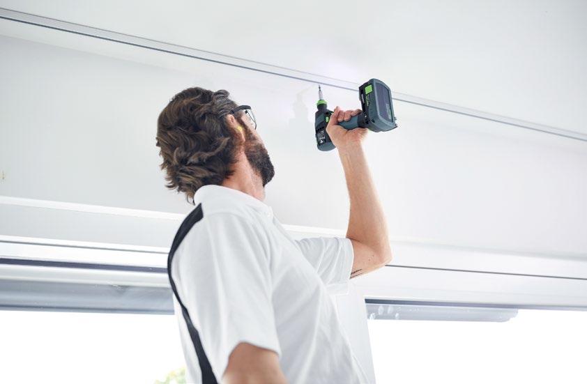 → Voor het fijne werk in hoeken is de accu-oscillerende VECTURO OSC 18 ideaal. Tenslotte worden als proef de profiellijsten ingepast.