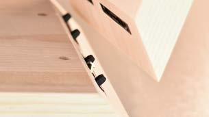 "De Tenso heeft het voordeel dat er geen toegangsboringen nodig zijn, omdat hij zelfspannend is. Dat maakt hem tot de ideale verbinder voor verlijmde meubels, zonder dat extra lijmklemmen aangebracht moeten worden."