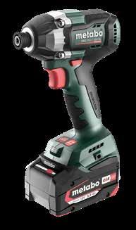 2x 4x 4x 2x 39 LT ACTIES Compact class Schroeven Max. 8x300 mm laag toerental Max. 6x200 mm hoog toerental Klokzaag tot 108 mm Tot max. koppel 75 Nm Slangenboor boor-Ø tot 38 mm Krachtig en veelzijdig Voor alle interieur boor- en schroefwerk. Accu klopboor-schroefmachine SB 18 LT BL (2x LiHD 4.0 Ah) Max. koppel zacht 34 Nm Max. koppel hard 75 Nm Boor-Ø staal 13 mm Boor-Ø zacht hout 38 mm Full Service-prijsgroep FS 4 Met incl. BTW € 398,09 Art. nr. 602316800 ACTIEPRIJS € 329,00 incl. BTW € 1.087,79 Art. nr. 685226000 SET-PRIJS € 899,00 18 Volt combo-set 4-pack Accu klopboor-schroefmachine SB 18 LT BL + accu slagschroevendraaier SSD 18 LT 200 BL + accu combihamer KH 18 LTX 24 + haakse accu slijper W 18 L 9-125 Quick (4x Li-Power 5,2 Ah) Met Extra 4de accu 18 V Li-Power 5.2 Ah * Gelieve na aankoop uw machine(s) te registreren voor verlengde garantie via de Metabo app of op metabo-service.com. 1. Registreer uw machine(s). 2. Laadt uw aankoopbewijs/factuur op. 3. Voeg nu de actiecode ‘radio’ toe. 4. Vergeet niet éénmalig per mail, omwille van GDPR, gebruik van uw emailadres te bevstigen.. Metabo stuurt de gratis radio na volledige registratie en bevestiging email adres naar u op. Deze actie loopt enkel via erkende Belgische dealers, zie: https://www.metabo.com/be/nl/dealer-zoeken/ Accu bouwradio R 12-18 DAB+ BT Bij aankoop van artikel 602316800 of 685226000. *GRATIS Indien 1. machine(s) geregistreerd worden en daaronder 2. aankoopbewijs/factuur wordt opgeladen bij registratie.