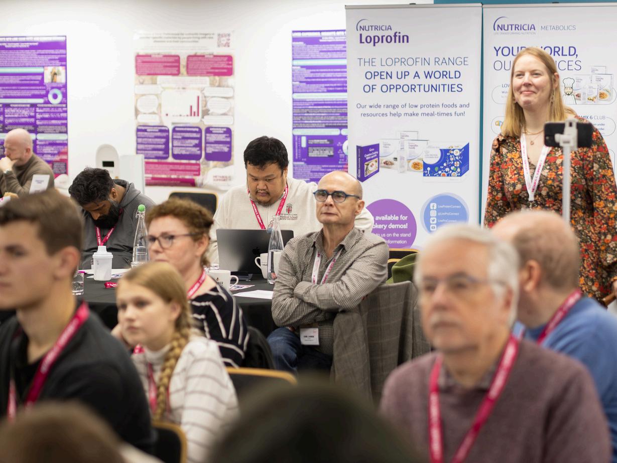 Thesessionclosedwithalivelygroupdiscussion Attendees sharedrealchallengesfacedatschool,inrestaurants,andeven innon-specialisthospitals.Speakersofferedpracticaladviceand encouragedpeopletoadvocateforbetterunderstandingofIMDs Thediscussionhighlightedtheneedforeducation,stronger communication,andcontinuedinnovationtomakelifewithalow proteindietmoremanageable.