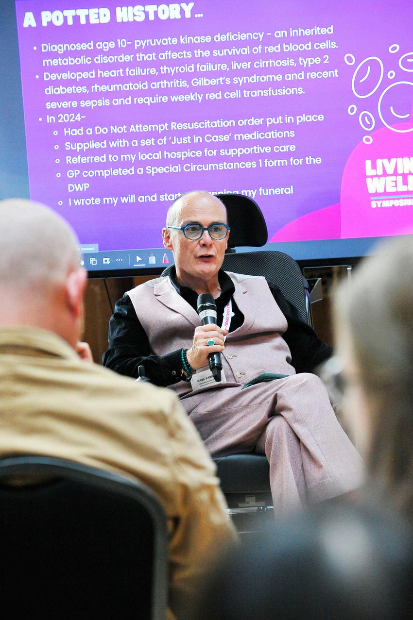 CarlLander,Co-ChairofMetabolicSupportUK,offeredapowerfulreflection onwhatitmeanstolivewellwithararecondition Hismessagecentredon resilience,purpose,andtheideathatlifewithararediseasecanbefullof opportunityandachievement.DrawingonhisexperienceofPyruvateKinase (PK)deficiency,Carlusedhisstoryasoneexampleofhowpeoplefindways toadapt,grow,andthrivedespiteongoingchallenges.