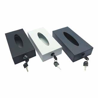 A sturdy hinged lid prevents loss or damage and provides stability when accessing the unit for replenishing stock
