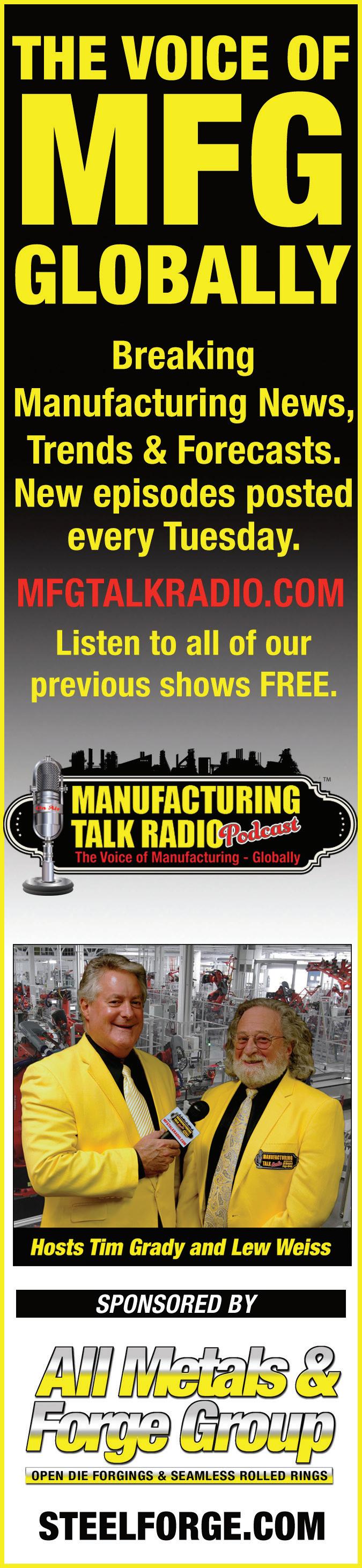Contact laweiss@mfgtalkradio.com for comments, suggestions and ideas and guest requests for MFGTALKRADIO.COM podcast or any of our podcasts.