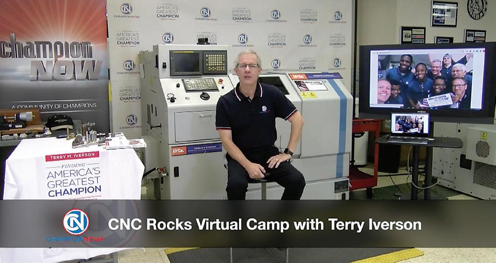 JOIN THECAUS E JOINTHE CAUSE Help change the perception of Manufacturing in the USA! www.championnow.org terry@championnow.org 847-299-2461 Finding America’s Greatest Champion Audio Book $24.99 l eBook $9.97 Paperback $21.99 l Hard Cover $27.99 Training CNC Mill and Lathe Package Table Top Champ CNC Lathe $7,795 l Table Top Champ CNC Mill $7,795 (requires laptop or PC for each ) Package with laptop $16,995 ➧ ➧ OUR FUTURE DEPENDS ON YOU. CNC Rocks Virtual Manufacturing Camp 22 videos 4.5 hours in length Schools: $500 annual subscription Industry: $750 annual subscription ➧ www.championnow.org Champion Individual Annual Corporate Membership For companies of 200 or less employees — $995 For companies over 200 employees — $1,995 With your NOW!membership you receive: l Applicant Advantage Annual Membership (student video resume portal) l Annual membership certificate l Finding America's Greatest