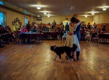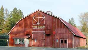 banquet hall in the Methow Valley — with ample parking to boot. It’s also one of the most iconic venues within the Winthrop town limits. The Barn is climate-controlled for year-round comfort with a full kitchen, and plenty of tables and chairs. In 2025, the sound system and stage lights were upgraded, and additional restrooms were built in an adjacent “baby barn.” Additionally, the old fluorescents were recently replaced with warmer bistro lights. The Barn is directly across the Chewuch River from Winthrop’s downtown retail core and adjacent to Mack Lloyd Park, with access to the Methow River — a tranquil backdrop for couples who’d like to exchange vows outdoors. The Barn’s stage will accommodate your band, and there’s plenty of room for dancing.