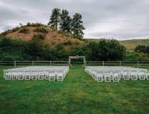 • Sun Mountain Lodge, sunmountainlodge.com. Whether your wedding party totals a dozen or 400, Sun Mountain Lodge has a venue for you. A total of eight locations on the 3,000acre grounds enables couples to craft the experience they desire. Whether you prefer a grand view of Mount Gardner, a serene spot overlooking Patterson Lake, or the intimacy of the wine cellar, you’ll find it at Sun Mountain. Staff can help you plan and coordinate your ceremony, reception, lodging and recreation. Catering is provided by the lodge.