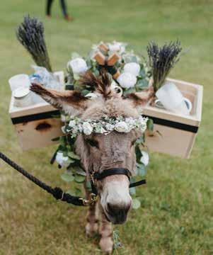 he is requested. He has a custom crafted pack with restaurant-grade beverage containers so guests can help themselves to drinks (beer, batched cocktails, etc.). He’s very agreeable and wears flower headpieces and wreaths, provided by either us or the couple. He’s always a crowd pleaser and one of the most photographed staff members we have. Guests love to give him alfalfa cubes as a tip!”