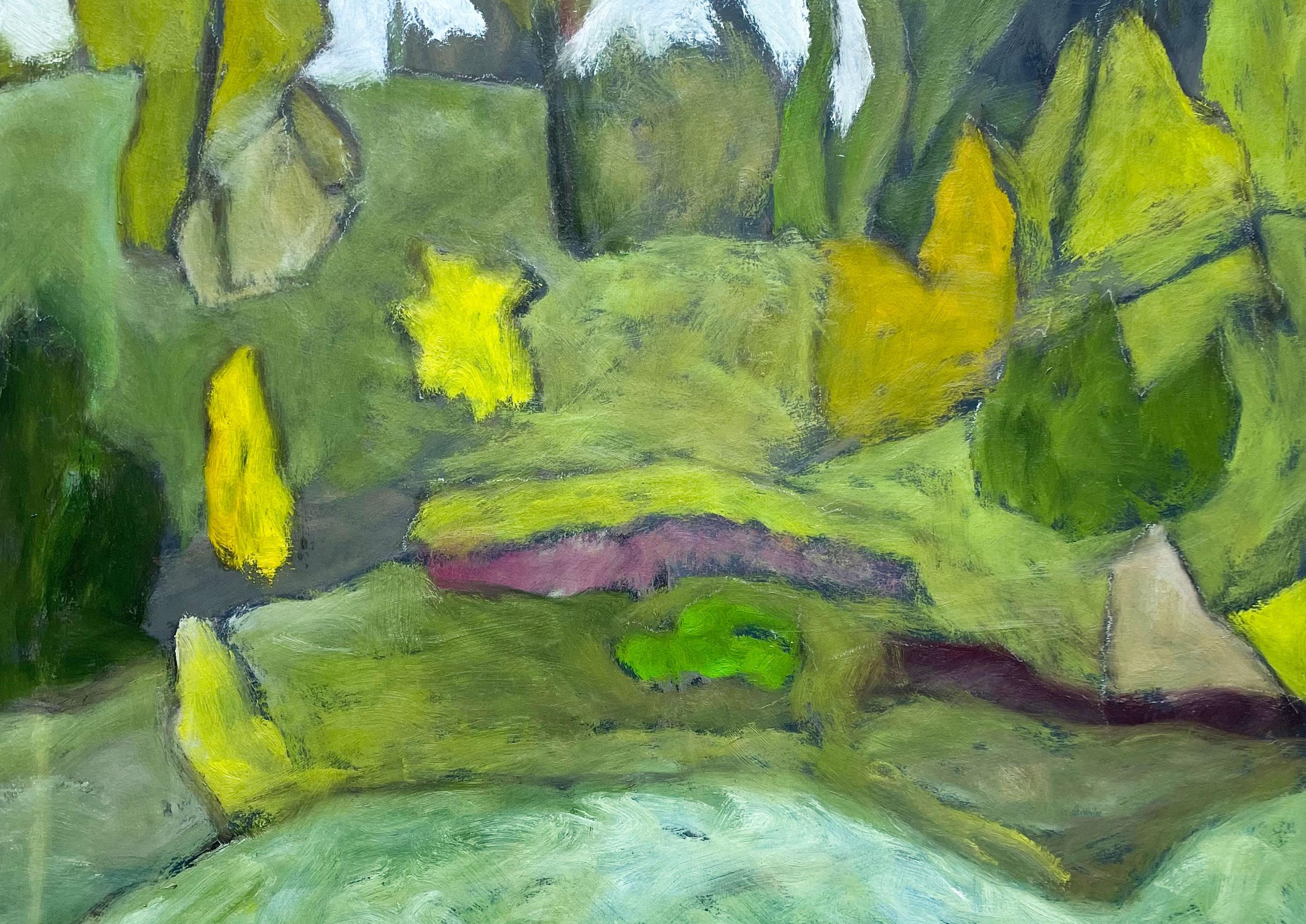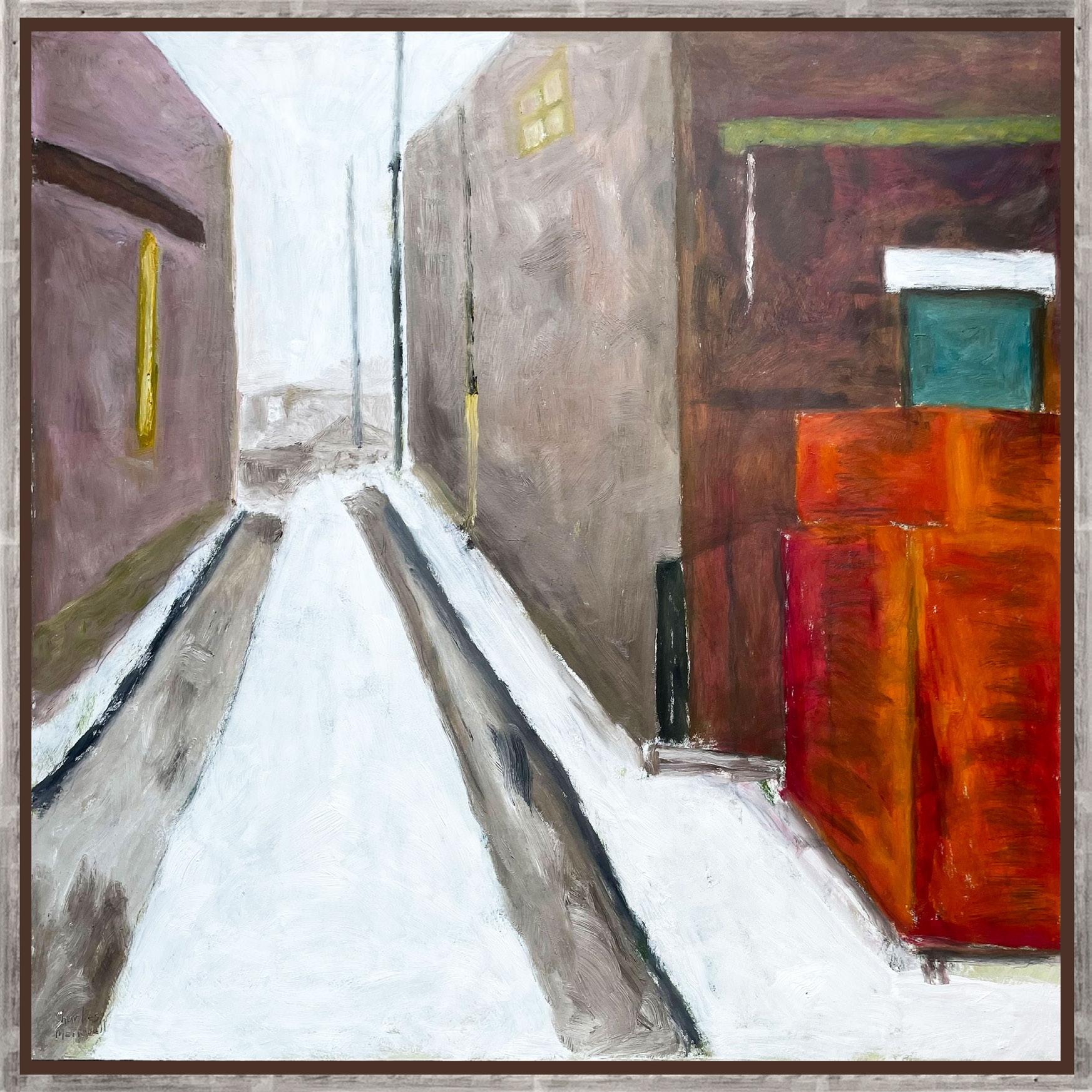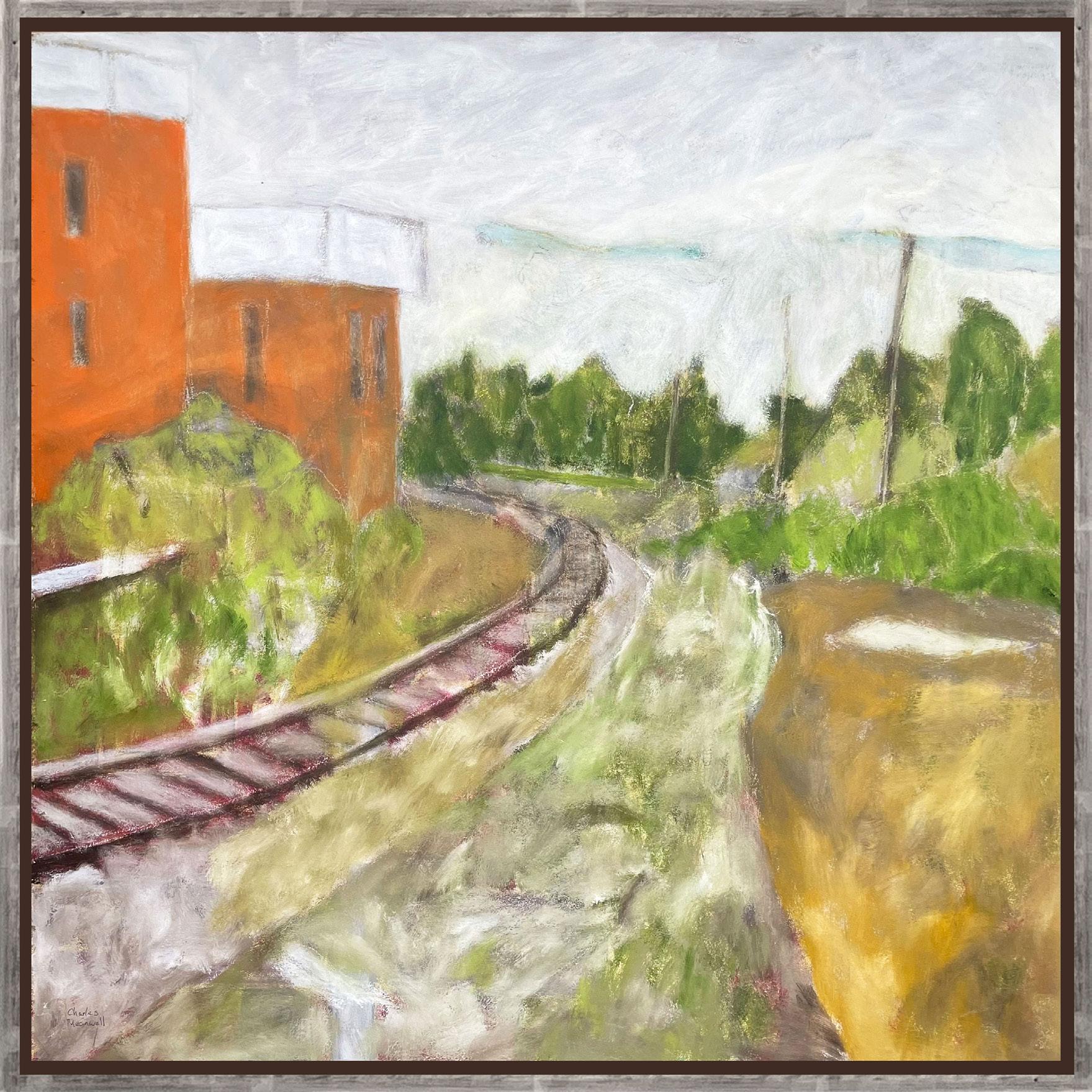 For more than forty years, Charles Meanwell has painted the places that surround him. This new body of work is inspired by his recent move to Montreal and a deliberate choice to give up his car in favour of train travel and walking. Through these moments of motion, Meanwell distills his new home into lines, shapes, and blocks of colour, interspersing his soft colour palette with deeper reds and greens, echoing the city’s brick buildings and parks.
