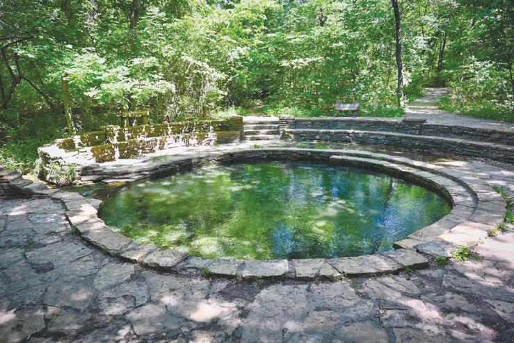 One of the most popular trails in the park, the Travertine Creek Trail, is about 3 miles round trip and connects the Travertine Nature Center and Pavilion Springs. This gravel trail is relatively flat, featuring bridges, descending creeks and multiple cascading falls, like Little Niagara Falls, a popular destination and swimming hole for kids to play in during the summer. Strollers with larger wheels can traverse the gentle slopes of this trail with ease. Leashed pets are allowed in most areas of the park, excluding the swimming areas along Travertine Creek and the trails just east of the nature center.