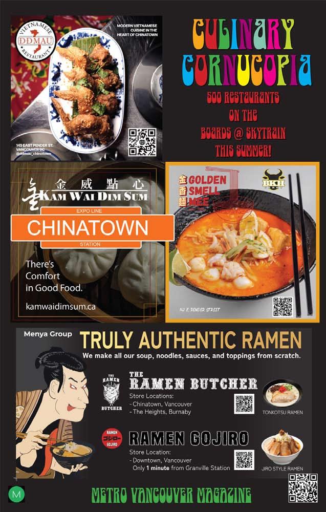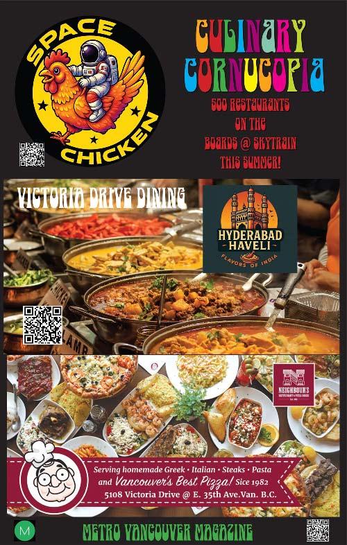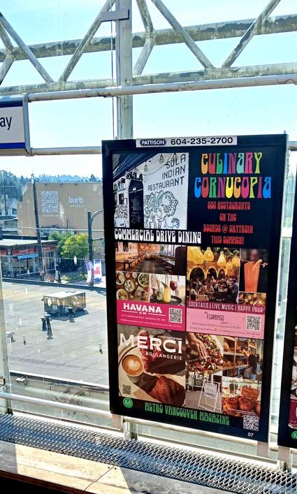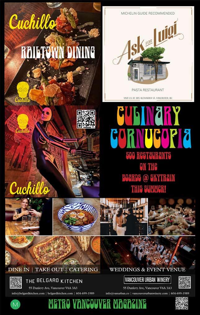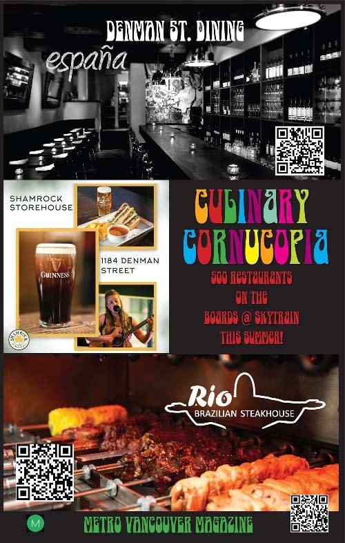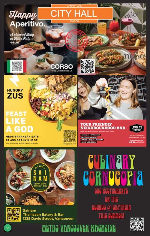 Welcome to Culinary Cornucopia The Magazine. This magazine represents 90 skytrain billboard ads we put up around Metro Vancouver from March 2025 to December 2025 to support the hospitality industry. For the first time, 100 restaurants have the chance to be seen on skytrain platforms, Vancouver’s most unique and high profile advertising venue. Culinary Cornucopia is the first of five promotions we will be putting up this year. We started the other promotions but they are not far enough along to have their own magazine yet so we have put what we do have in the back of this book. There is OUR TOWN for all small businesses. THE UNITY SERIES promoting Buy Canada and the Democratic way of life in Canada, Europe and Britain. The last one we have included is STRIKE UP THE BAND supporting public school music programs everywhere.