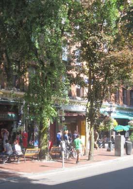 the mother tongues in 30 per cent of Vancouver homes, makes Chinese the largest “minority” ethnic group. There are lots of interesting markets with many varieties of fresh and dried seafood and mushrooms. You’ll also find inexpensive houseware and traditional Chinese medicine. During the summer, on weekend evenings, Keefer and Pender Streets become a busy openair night market. If you have time for a leisurely meal, try dim sum at one of the many small restaurants. It is an inexpensive, multi-course culinary adventure. Besides the businesses on Pender Street, try East Georgia for some interesting newcomers and oldsters.