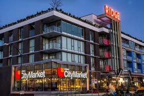 The Cambie Rise is located on the slope. Whole Foods Market is at 8th Avenue across from Canadian Tire and a Save -on-Foods at 7th. Drop in for a latte or coffee and check out the specials. The mix of stores on the Rise is eclectic. Dental, salons and a travel company are all represented. The Rise is located between two