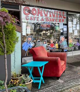 Convivial is a cozy eclectic café. Almost everything is made from scratch, in-house. The scones, muffins and chocolate cookies are especially popular although regulars will tell you the soups and salads are great too. There is a story behind the much-loved pony cake, just ask. Leave a treat for another customer less fortunate on the pay-it-forward wall.