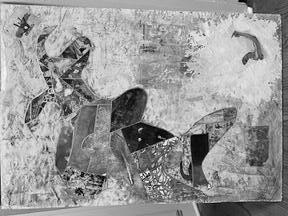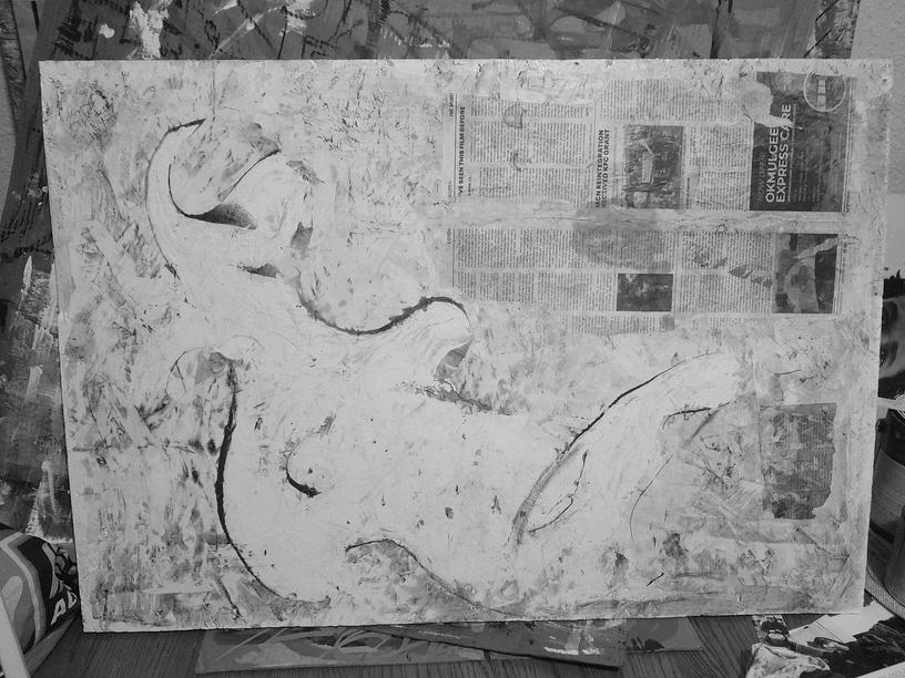 Lately I've been using wood I find around big trash day as canvas. I've been cobbling together my trash art inspired by Rauschenberg, De Kooning, and Dubuffet. My latest piece started by toning gessoed wood with walnut husks, to make it look vintage. I noticed a female figure in the outline and filled it by cutting up last winter's monoprints. Not sure if I ate with this one, but it was so much fun to make!