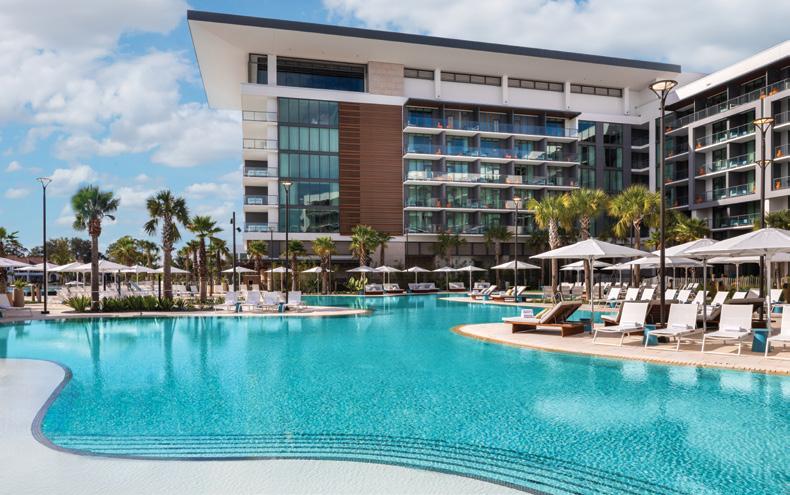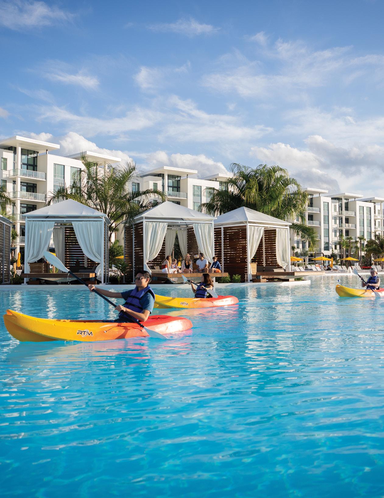 Just a short drive from Tampa, a new kind of luxury getaway awaits in Orlando—one where you can sip cocktails on a white-sand beach, paddleboard across sparkling turquoise water, play championship golf, and still catch the fireworks over Walt Disney World at night. Welcome to Evermore Orlando Resort, a first-ofits-kind destination that blends the indulgence of a five-star hotel with the comfort and flexibility of spacious vacation residences.