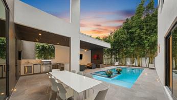 swaying palms and a resort-style pool with a separate heated spa. Generous areas for lounging and dining alfresco make the space ideal for relaxed weekends or evenings under the stars.