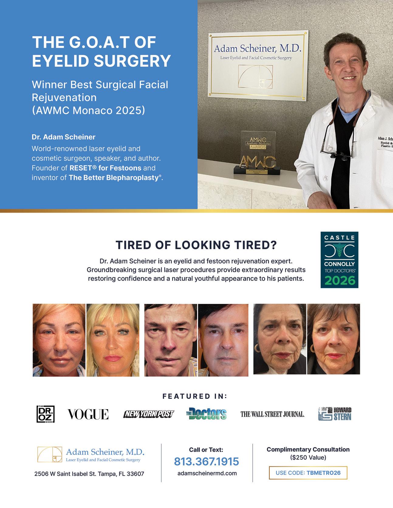 In this our 24th Annual Medical Issue, you will find METRO’s BEST DOCTORS with our exclusive Castle Connolly Top Doctors® listings. These peer-selected physicians represent some of the most respected medical professionals in Tampa Bay, providing trusted care for our families and neighbors.