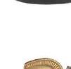 The powder room offers the perfect opportunity for a bit of coastal whimsy. White and gold wall coverings complement a granite countertop and a vanity featuring woven-texture doors.