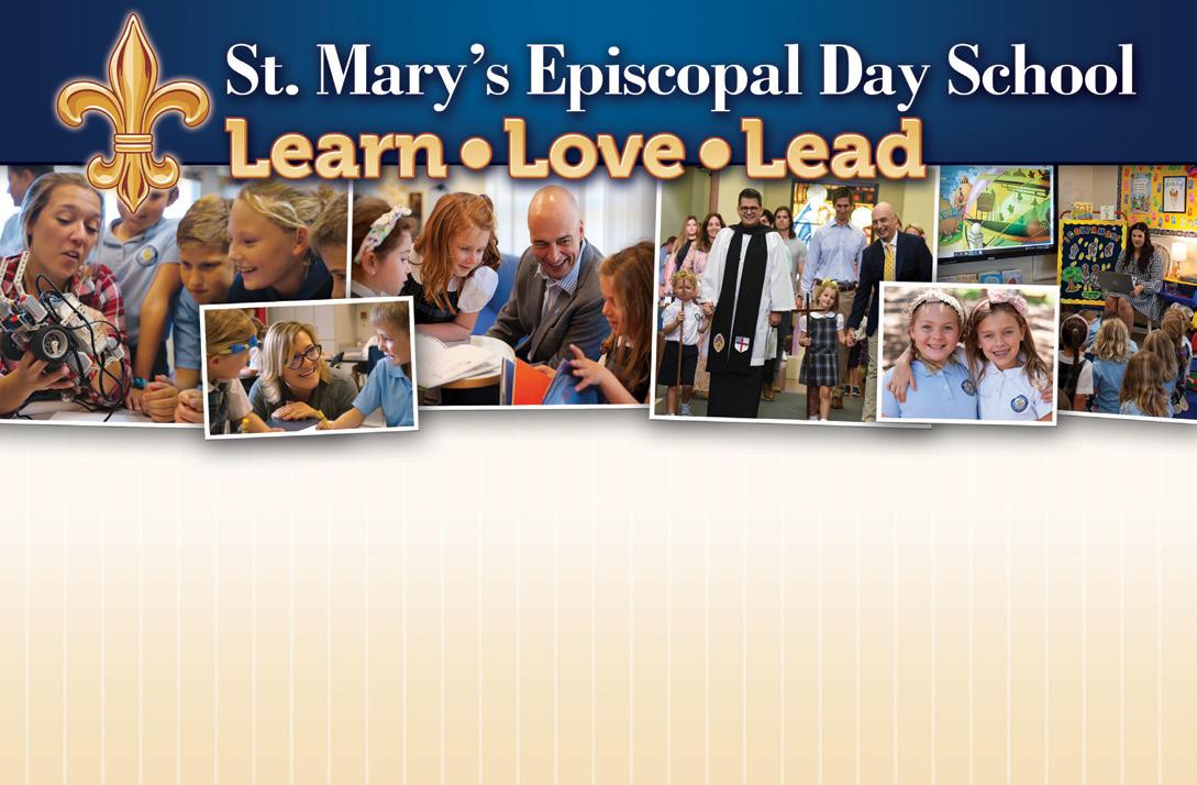 At St. Mary’s Episcopal Day School, your child will experience challenging academics, exciting performing and visual arts, competitive athletics, enrichment classes, global studies, advanced technology, public speaking, foreign language, community service, religious education, and more. St. Mary’s is an independent, co-educational PreKindergarten through 8th grade school providing intellectual, spiritual, and personal growth. Our highlyqualified faculty inspires students to achieve their best, developing well-rounded individuals ready for the challenges ahead. Specific character development goals include integrity, self-discipline, self-motivation, good citizenship, kindness, the ability to communicate and collaborate well, and a love of learning. Visit www.smeds.org or call 813-258-5508.