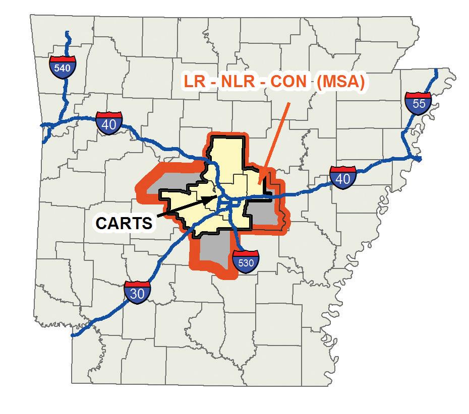 The Central Arkansas Regional Transportation Study, or CARTS, is the cooperative effort by the participating communities, transportation providers and many other interested parties to develop a long-range transportation plan for the metropolitan area.