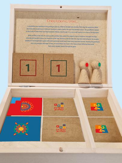 The second phase was a book pairing each letter with a location in Albania, highlighting the country’s cultural and natural heritage. Finally, I designed an educational game based on numbers and mathematical tasks, where players complete a map of Albania by collecting hidden treasures. Together, these elements aimed to present cultural heritage in an interactive and engaging way.