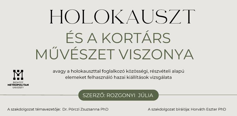 A holokauszt és a kortárs művészet kapcsolatát vizsgáltam, különösen a 2010 utáni hazai részvételi alapú projekteket. Arra jutottam, hogy az interaktív, közösségi elemek hatékonyabban segíthetik a traumák feldolgozását és a tabuk oldását.