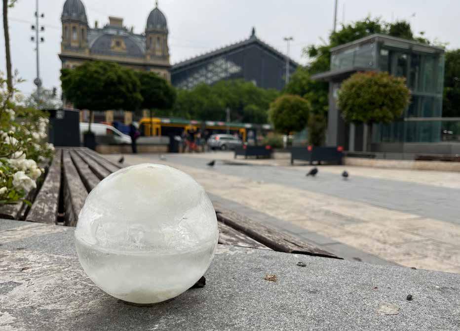 A kutatás során egyértelművé vált számomra, hogy a Duna és a városi szövet közötti elválasztottság strukturális, várostervezési okokra vezethető visszaEzek nagyléptékű problémák, amelyekre egyéni művészeti projektként nem tudok közvetlen megoldást kínálni- Éppen ezért nem a problémák kiemelésére, nem a hiány, vagy a hiba hangsúlyozására akartam építeni a munkám, hanem sokkal inkább a Duna pozitív potenciáljára- Olyan gesztust kerestem, amely kapcsolódást teremthet egy személyesebb, érzékenyebb irányból- Célom az volt, hogy valamilyen módon elérhetővé tegyem a Dunát, és a városba vigyem annak jelenlétét- Ehhez a víz médiumként való alkalmazása tűnt a legalkal masabbnak - A víz, amely alakot vált, hordoz, befogad és változik, metaforikus jelentéstartalmaival jól illeszkedett a gondolataimhoz- Végül a Duna vizét jéggé fagyasztva hoztam létre egy olyan tárgyi formát, amely egyszerű és sokrétűA jéggömbökbe kacsaköveket (part menti kavicsokat) helyeztem el, mint egyfajta személyes üzenetet vagy emlékeztetőt- Remélve, hogy ezek a kavicsok – mint gyerekkori emlékeket felidéző, ismerős tárgyak – érzelmi rezonanciát keltenek és arra ösztönzik a befogadókat, hogy lemenjenek a Duna partjára, időt töltsenek ott, és újra személyes kapcsolatba kerüljenek a folyóval- A jég metaforaként is szolgált, ahogy elzárja a követ, úgy zárja el a városlakót a Duna élményétől a város és a rakpart jelenlegi kialakítása- A gömbök így egyfajta hordozóként működtek, melyben benne van a folyó fizikai jelenléte és egy jelképes tartalom is-