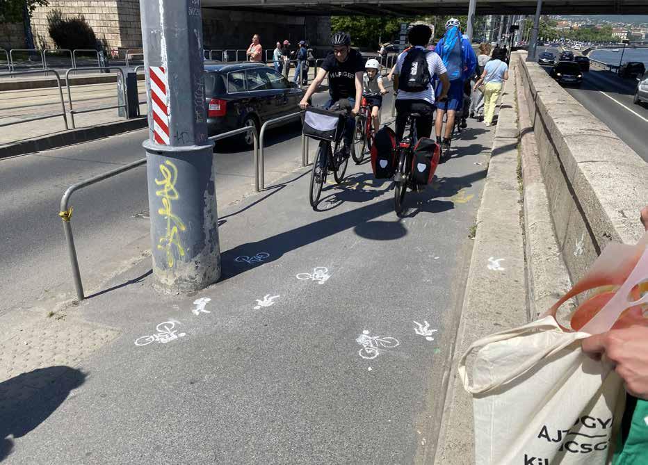 CHAOS ON THE QUAYSIDE: I raised the issue of chaotic traffic on the Buda quay’s cycle and pedestrian lanes. On the Pest quayside, weekend quayside closures are already a success, allowing pedestrians and cyclists to dominate the quayside lanes. This contrasts with one of Budapest’s busiest pedestrian and cycling routes, the Szent Gellért quay. This stretch is located between the Liberty Bridge and Batthyány Square. However, there is only a very narrow strip of asphalt,which is only 220 cm wide, and in some parts not even that. This small area must be shared by runners, walkers and cyclists alike. This situation leads to daily conflicts.