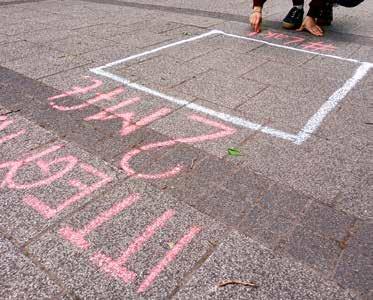 3 - The use of public spaces and brick surfaces linked the Fire project to the parallel programme launched in 2010, also called “Public relations”, which later became Pixel Faults, which is still running today with the same themeIn particular, the capital’s deficient brick surfaces provided the grid which we focused on with students from different disciplines invited to participateI had the opportunity to experience the cross fertilising power of different approaches in the symposia and artists’ workshops on several occasions until 2010 - The mutual inspiration of artists from different perspectives, representing different generations, was very motivating for me - It was obvious that I would explore this interesting and complex field of research in such an extended professional community, which fitted in well with my then four years of academic work - As a mentor I was reaching out like an octopus to the Pixel Faults of the urban grid, to encourage their research and to use my questions to strengthen the projects’ maturity-