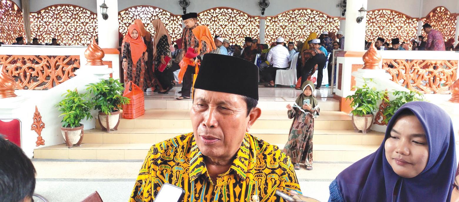 Dalam kegiatan itu, Bupati Rohul, H Sukiman menyerahkan secara simbolis perangkat alat shalat dan sejumlah uang kepada ratusan anak yatim yang hadir.