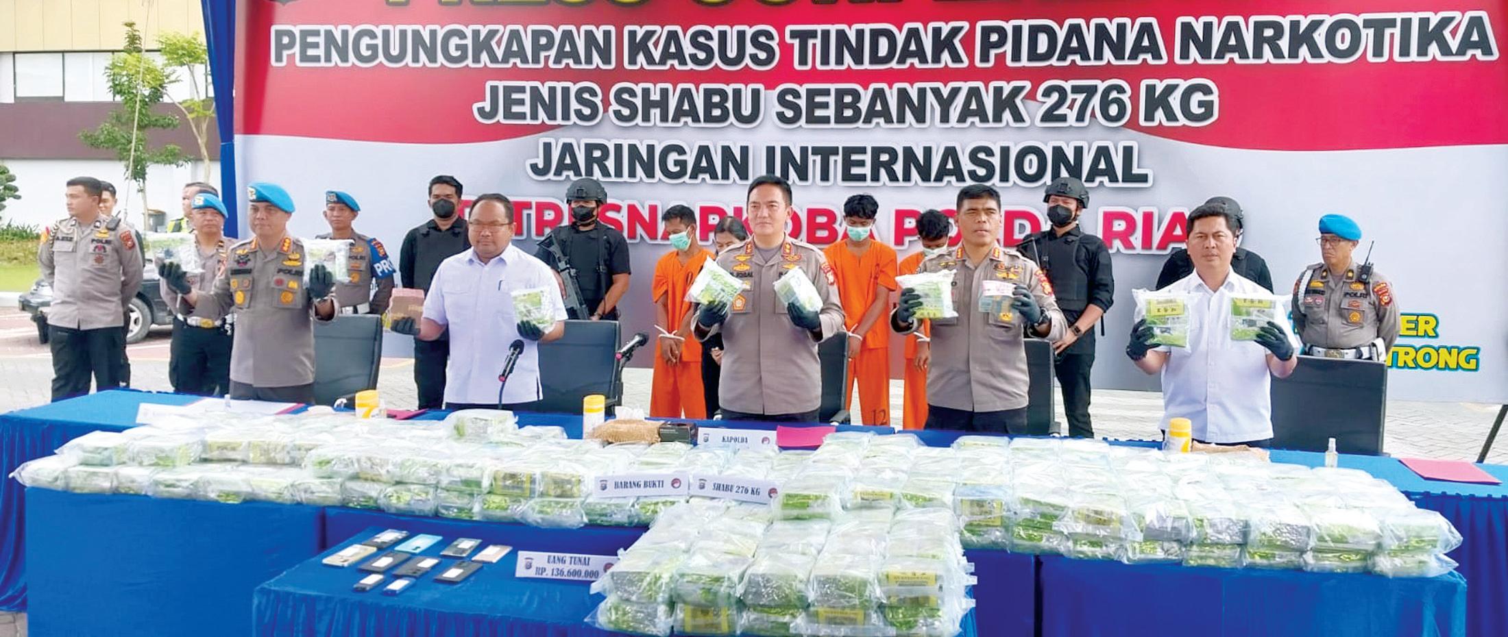 276 kg sabu jaringan internasional (berhasil diamankan). Dengan bertambahnya pengungkapan ini, sejak saya menjadi Kapolda, hampir satu ton sabu sudah diungkap