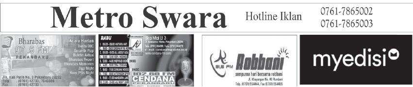 56.320 Rumah Rusak, 61.908 Orang Mengungsi KURS TRANSAKSI BI Sumber www.bi.co.id USD 15.794,58 AUD 10.459,17 SGD 11.444,52 HKD 2.021,45 JPY 111.3706 MYR 3.454,63 EUR 16.217,87 CNY 2.206,35 RABU, 23 NOVEMBER 2022 Harian Pagi THE POWER OF INNOVATION THEBE R2013 G O L D WINNERINDONESIA PRINTMEDIAAW A R D BERWAWASAN DAN BERKEPRIBADIAN METRO RIAU L ULUS V ERIFIKASI F AKTUAL Diserahkan Langsung Oleh DEWAN PERS Di Harris Hotel & Conventions Surabaya, KAMIS, 24 NOVEMBER 2022 M 30 RABIUL AKH IR 1444 H Eceran: Rp6.000.- per eksemplar Luar Kota + Ongkos Kirim