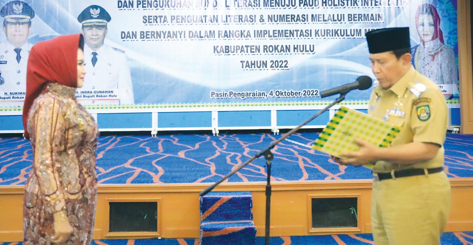 Hal tersebut disampai kan Bupati Rohul, H Suki man pada acara Workshop Seribu Pendidik Pendidikan Anak Usia Dini (PAUD) dan Pengukuhan Bunda Literasi Kabupaten Rohul Tahun 2022, Selasa (4/10) di Pasir Pengaraian. Bunda Literasi Kabupaten Rohul yang dilantik Bupati yaitu Hj Peni Herawati.