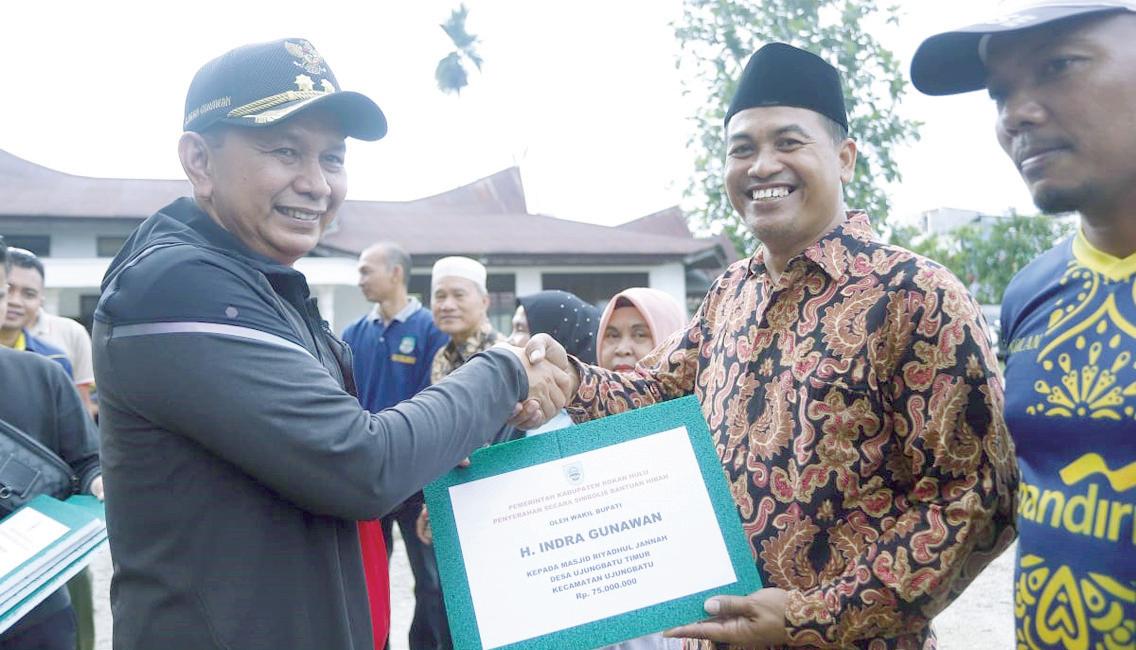 UJUNG BATU - Wakil Bupati Rokan Hulu (Wabup Rohul), H Indra Gunawan mengunjungi 16 kecamatan di Kabupaten Rohul dengan melaksanakan sejumlah rangkaian senam sehat dan penyerahan bantuan hibah untuk pembangunan masjid. Di penghujung tahun 2022 ditutup dengan penyerahan bantuan hibah pembangunan masjid di Kecamatan Ujung Batu.