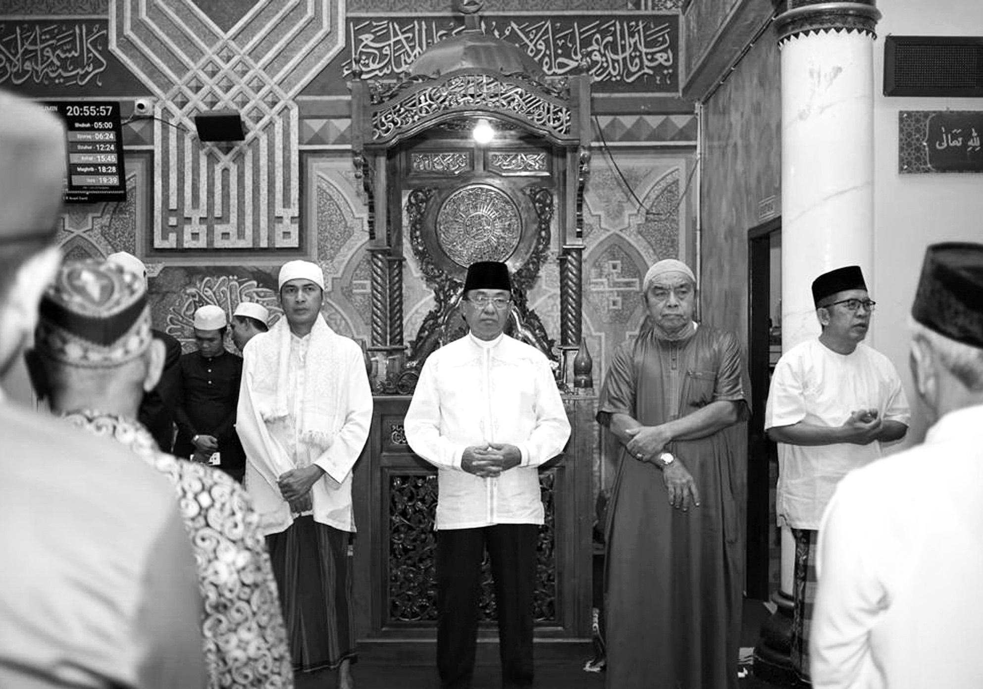 B UPATI INH I L bersama jamaah Masjid Jami’ Raudhatul Muslimin. (inhilkab.go.id)