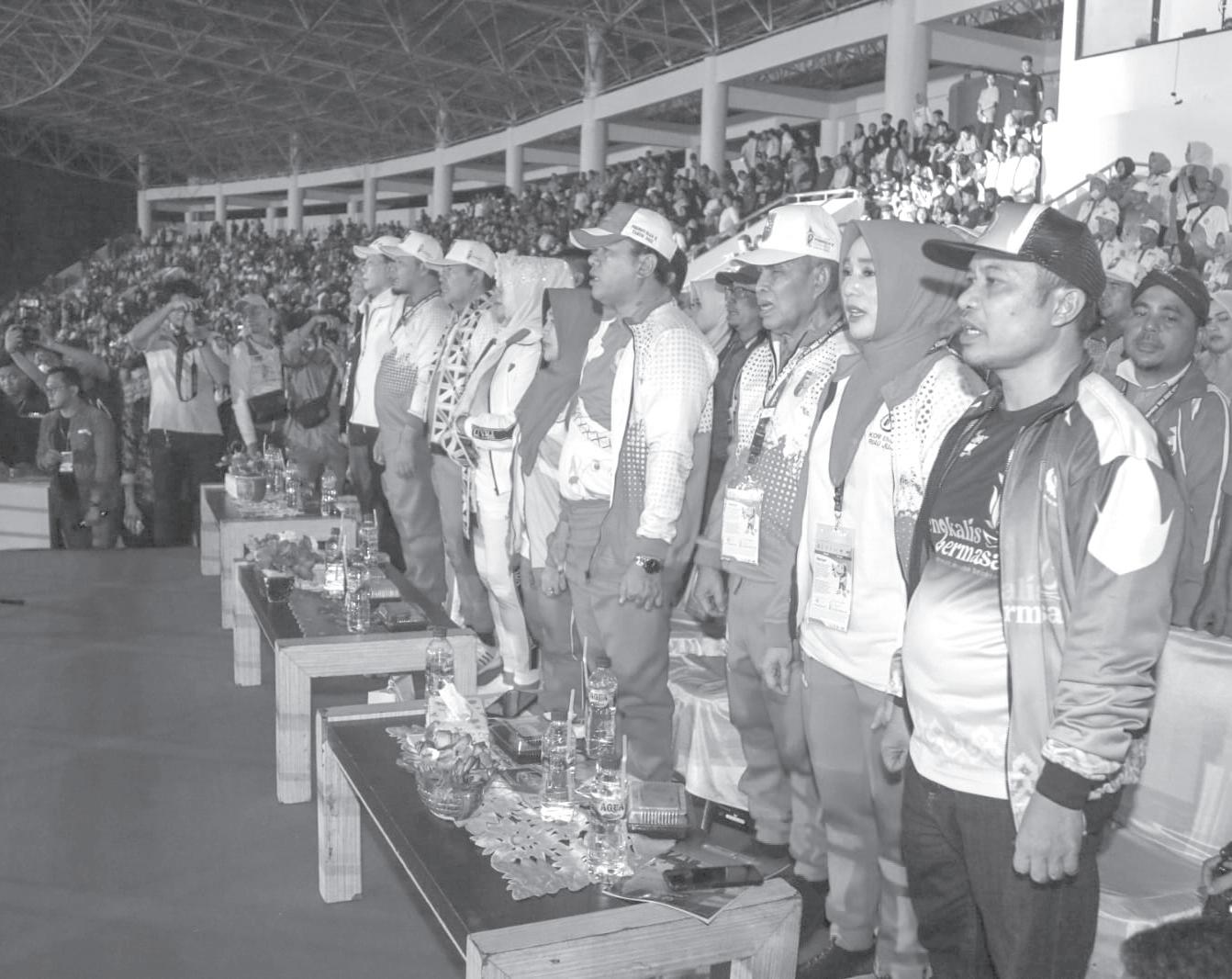“Alhamdulillah, kondisi para atlet dalam keadaan se hat dan siap untuk bertand ing, saya berharap tetap se mangat bertanding, junjung tinggi sportivitas serta op timis dapat meraih medali untuk Kabupaten Indragiri hilir sebanyak mungkin,” harap bupati.