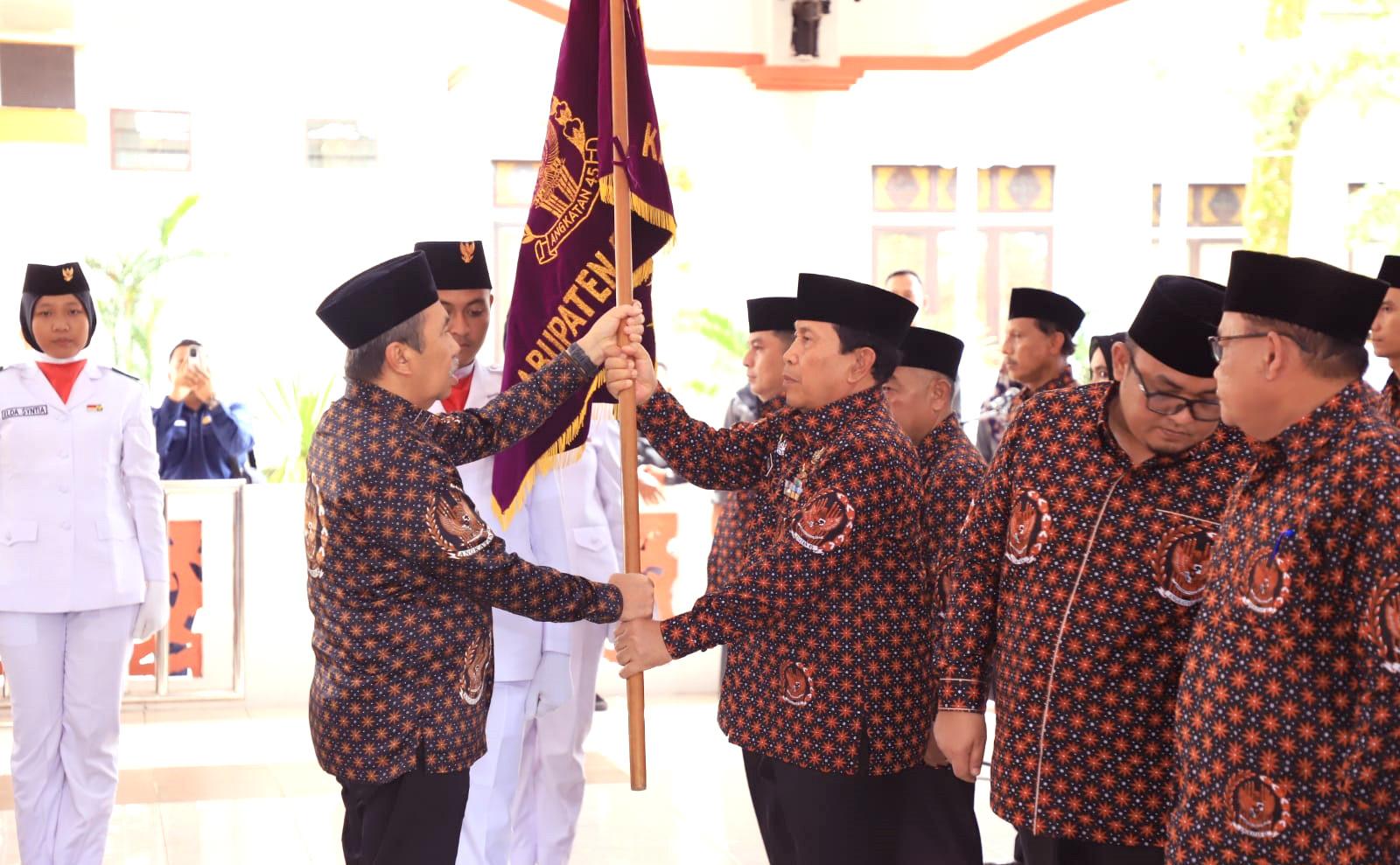 PENGARAIAN - Ketua Umum Daerah Badan Pembudayaan Kejuangan 45 (DHD) Provinsi Riau yang juga Gubernur Riau, Drs H Syamsuar MSi melantik pengurus Dewan Harian Cabang (DHC) Badan Pembudayaan Kejuangan 45 Kabupaten Rokan Hulu (Rohul) yang diketuai H Sukiman, di pendopo rumah dinas Bupati Rohul, Minggu (15/1).