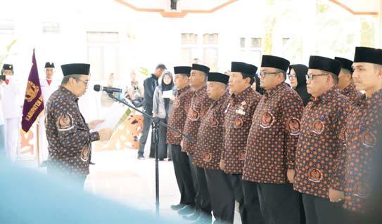 K ETUA U MUM Daerah Badan Pembudayaan Kejuangan 45 Provinsi Riau yang juga Gubernur Riau, Drs H Syamsuar MSi melantik pengurus Dewan Harian Cabang Badan Pembudayaan Kejuangan 45 Kabupaten Rokan Hulu yang diketuai H Sukiman, di pendopo rumah dinas Bupati Rohul, Minggu (15/1). (Adv)