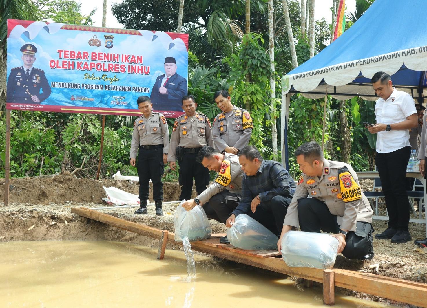 RENGAT – Dalam mendukung program ketahanan pangan, Polres Indragiri Hulu (Inhu) tebar 6.000 ekor benih ikan di kolam milik warga. Kegiatan berlangsung di kolam milik Afrizal Dharma, Rabu (19/2).