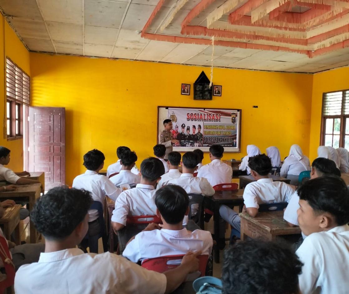 SIMPANG KANAN - Kepolisian Sektor (Polsek) Simpang Kanan menyosialisasikan program prioritas kapolri dalam rangka memaksimalkan penerimaan calon anggota Polri, meliputi Akpol, SIPSS, Bintara, dan Tamtama tahun 2025. Kegiatan sosialisasi rekrutmen penerimaan calon anggota Polri dilakukan Rabu (19/2), di SMK N 1 Simpang Kanan, khususnya bagi siswa-siswi kelas XII. Sosialisasi tersebut dilaksanakan oleh Bhabinkamtibmas Bukit Damar, Bripka Mariadi, bersama Bhabinkamtibmas Bagan Nibung, Bripka Yudhi Arjuna.